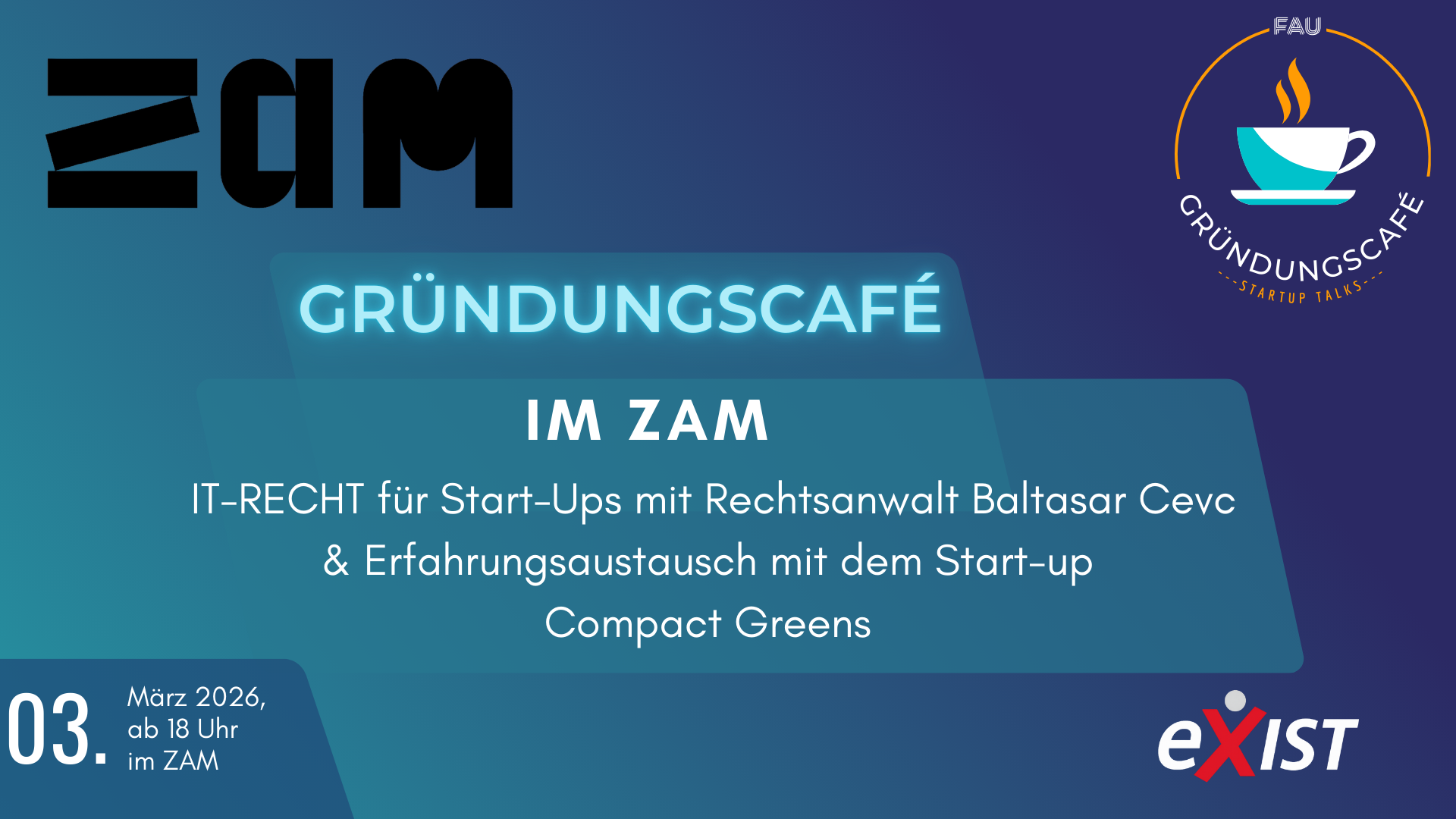 Sei dabei beim Gründungscafé des FAU Start-up Service und dem ZAM